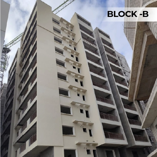 Granite flooring at lobbies and anti-skid vitrified tiles in common areas. 2x2 double charged vitrified tiles hall, dining and remaining bedrooms of premium make. Rustic ceramic tiles in balconies. Glazed ceramic tile dado up to 6" height in all bathrooms, of reputed brand.